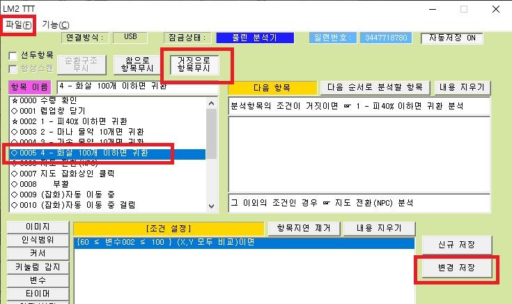 ±×¸®°í ÀͽºÆ®¸² °ñµå ¼³Ä¡ Æú´õ¿¡¼ ȯ°æ¼³Á¤À» ½ÇÇàÇØ µ¿ÀÛ°£°ÝÀ» 0À¸·Î ÇÏ°í ½ÇÇàÀ» ÇØ¼ »ç¿ëÀ» ÇØÁÖ¼¼¿ä. È»ì °¹¼ö ÀνÄÀ» ÇÏ·Á¸é ºÐ¼®±â ÆíÁýâÀ» ½ÇÇàÇØ¼ ¸Þ´º¿¡ ÆÄÀÏ¿¡¼ ºÒ·¯¿À±â·Î ÀúÀå ÆÄÀÏÀ» ºÒ·¯¿É´Ï´Ù. ÀúÀå ÆÄÀÏÀ» ºÒ·¯¿Â ´ÙÀ½ À§ÀÇ ½º¼¦Ã³·³ "4 - È»ì 100°³ ÀÌÇÏ¸é ±Íȯ" Ç׸ñÀ» ¼±ÅÃÇØÁÝ´Ï´Ù. "4 - È»ì 100°³ ÀÌÇÏ¸é ±Íȯ" Ç׸ñÀ» ¼±ÅÃÇÑ »óÅ¿¡¼ "°ÅÁþÀ¸·Î Ç׸ñ¹«½Ã"°¡ ´·Á ÀÖ´Â »óÅÂÀ̸é È»ì °¹¼ö¸¦ ÀνÄÀ» ¾È ÇÑ´Ù´Â ¶æÀÔ´Ï´Ù. È»ì °¹¼ö¸¦ ÀÎ½Ä ÇÒ·Á¸é "°ÅÁþÀ¸·Î Ç׸ñ¹«½Ã"¹öưÀ» ´·¯ ´¸®Áö ¾ÊÀº »óÅ·Πº¯°æÀ» ÇØÁÖ¼¼¿ä. ±× ´ÙÀ½¿¡ ¿À¸¥ÂÊ¿¡ º¯°æÀúÀå ¹öưÀ» ´·¯ º¯°æÀúÀåÀ» ÇÑ ´ÙÀ½ ¸Þ´º¿¡¼ ÆÄÀÏ¿¡ ÀúÀåÀ» ´·¯ ¼³Á¤ÇÑ ³»¿ëÀ» ÀúÀåÇÑ ´ÙÀ½ »ç¿ëÀ» ÇÏ¸é µË´Ï´Ù.